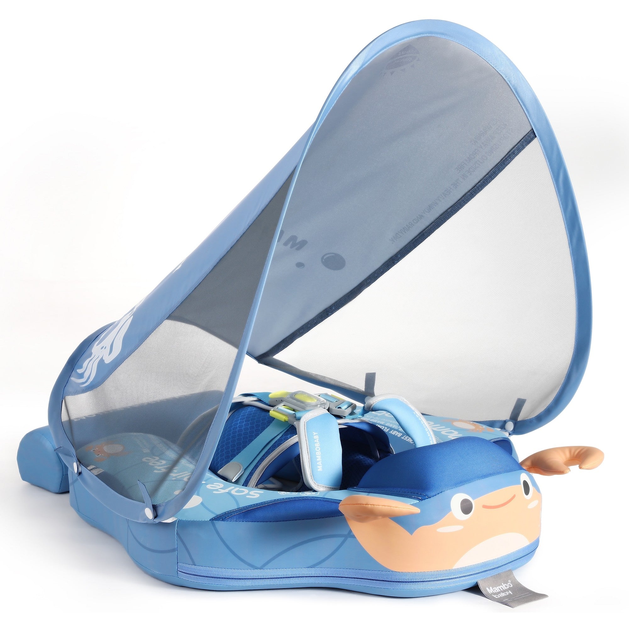 Introducing the Mambobaby Lite - a compact, portable, and budget-friendly baby swim float perfect for vacations and outings. Featuring a compressible folding design and upgraded safety with a 5-point buckle system and 40° angle for optimal balance, this float offers a secure and enjoyable experience. With an adjustable, comfortable fit and an adorable design, the Mambobaby Lite ensures fun in the water while prioritizing safety.
