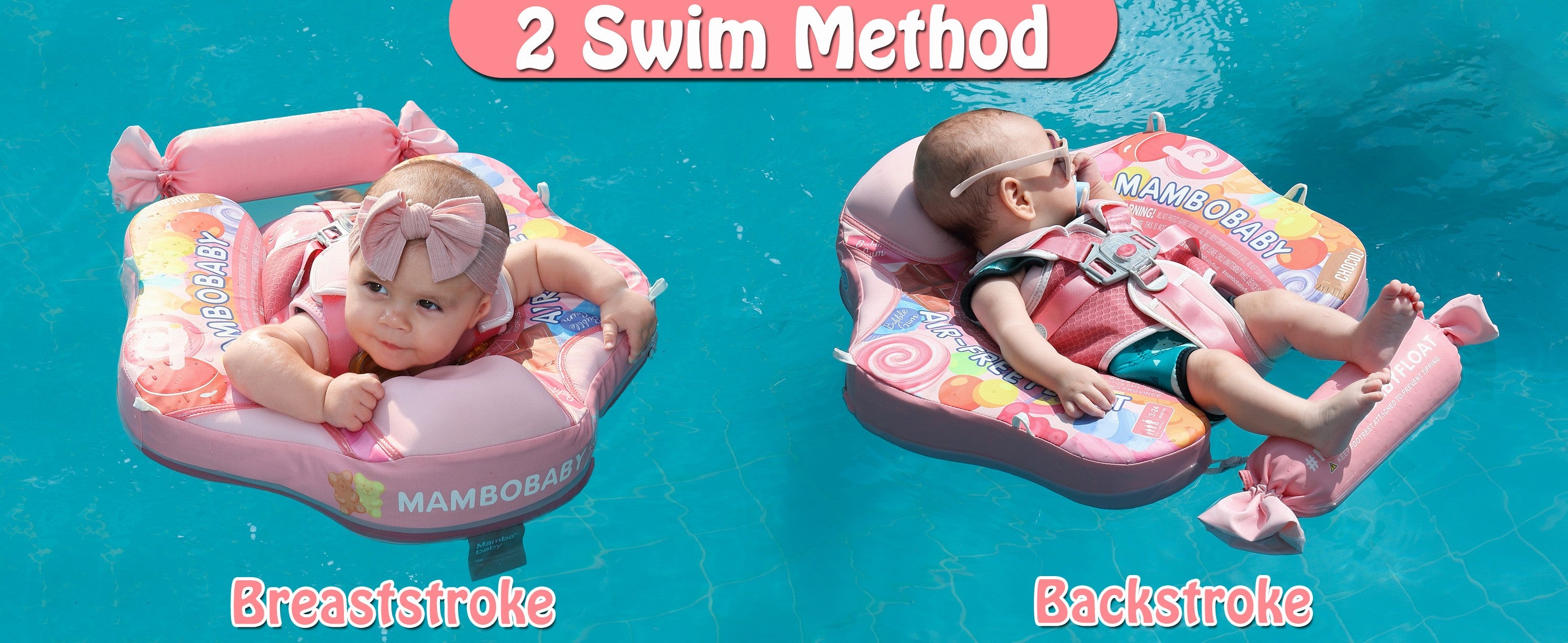 The safety buckle of Mambobaby swimming float with soft material. It is not only kept safe for your baby but lets baby backstroke or breaststroke with different buckle methods.