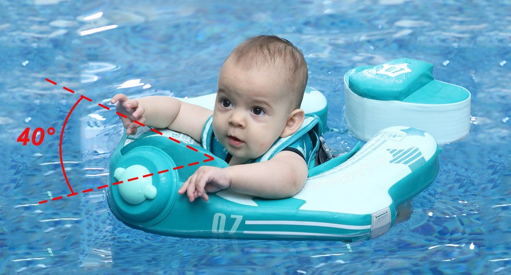 When the baby is lying on the swim float, being able to maintain the post of breaststroke all the time, cultivate your baby's correct swimming posture.