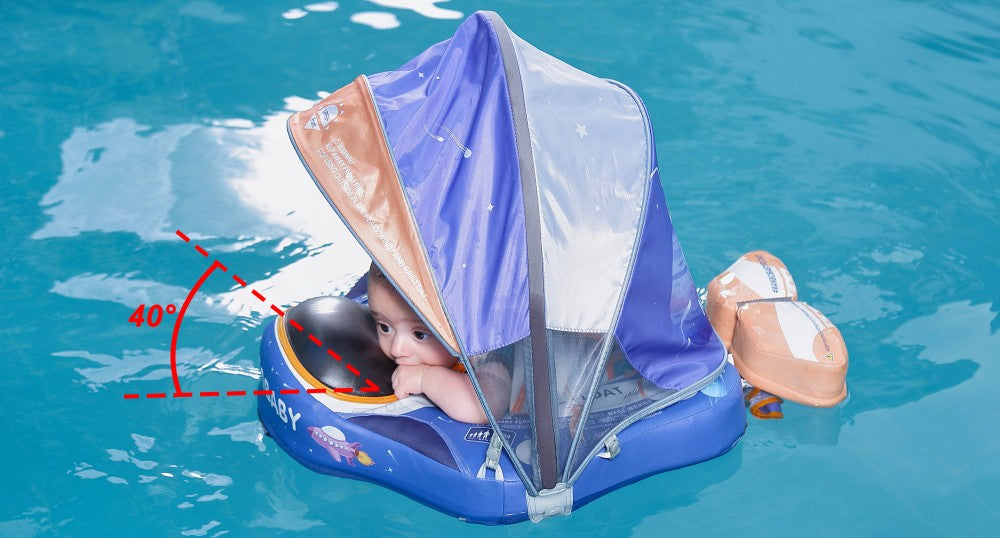 HECCEI Mambobaby Float comes with a removable canopy. The removable assemble UV-PROOF canopy sun canopy covered with UPF 50+ sunscreen coating protects baby’s skin away from the sun.