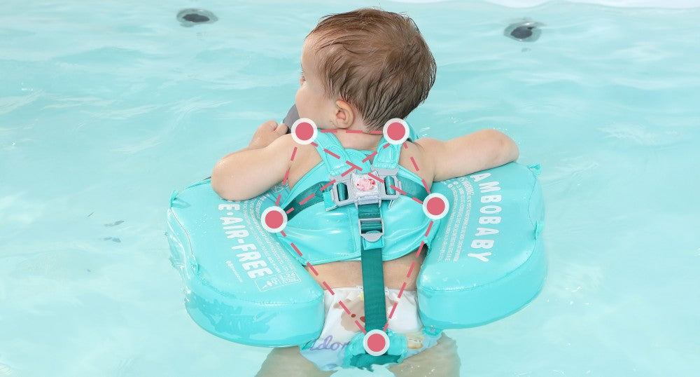 The Non-inflatable MamboBaby Swim Ring Float vest-type close-fitting design, wider straps are more comfortable, strengthens the position of the squat and supports the abdomen to prevent it from falling backward or flipping.