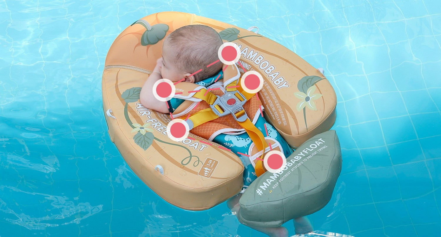The safety buckle of Mambobaby swimming float with soft material. It is not only kept safe for your baby but lets baby backstroke or breaststroke with different buckle methods.