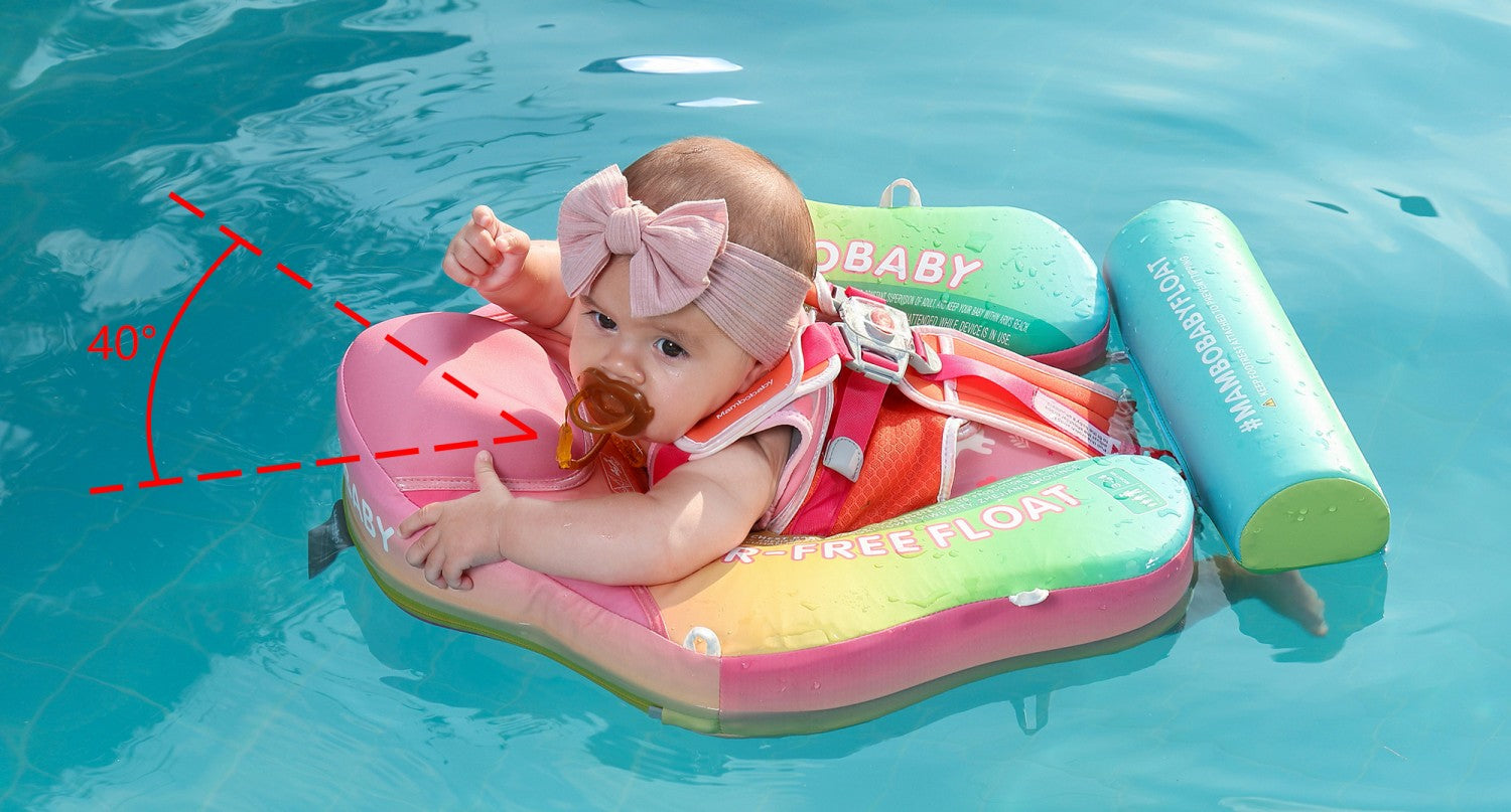 The safety buckle of Mambobaby swimming float with soft material. It is not only kept safe for your baby but lets baby backstroke or breaststroke with different buckle methods.