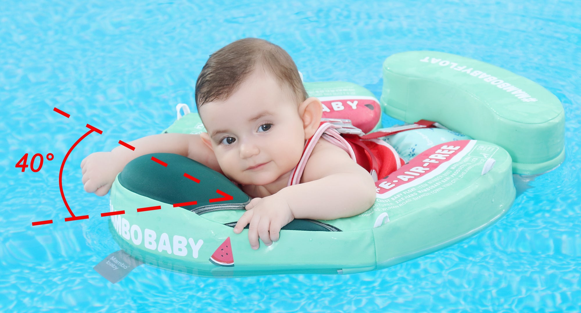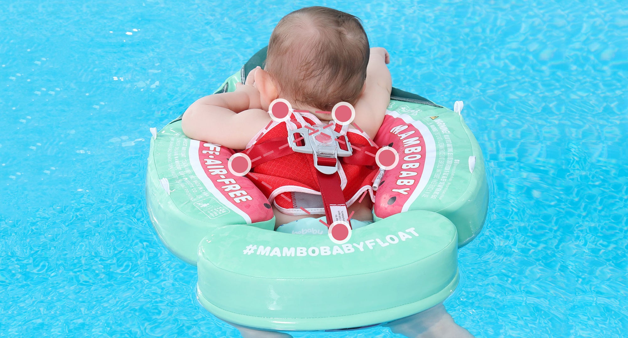 The Non-inflatable MamboBaby Swim Ring Float vest-type close-fitting design, wider straps are more comfortable, strengthens the position of the squat and supports the abdomen to prevent it from falling backward or flipping.